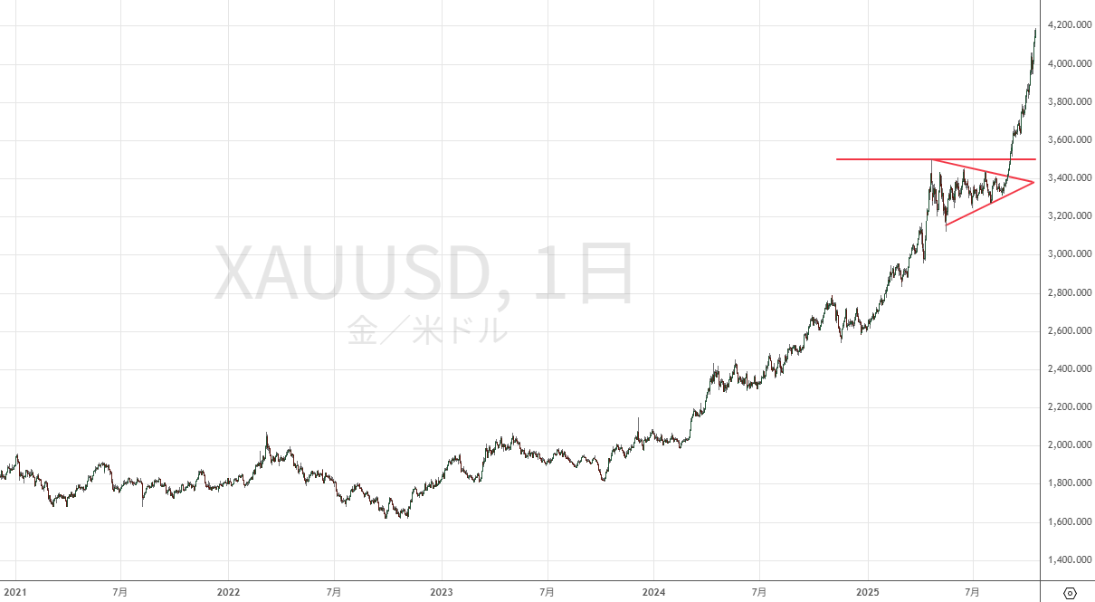 今回の報道からさらに勢いを増し早くも4200ドルが目前に迫っています。