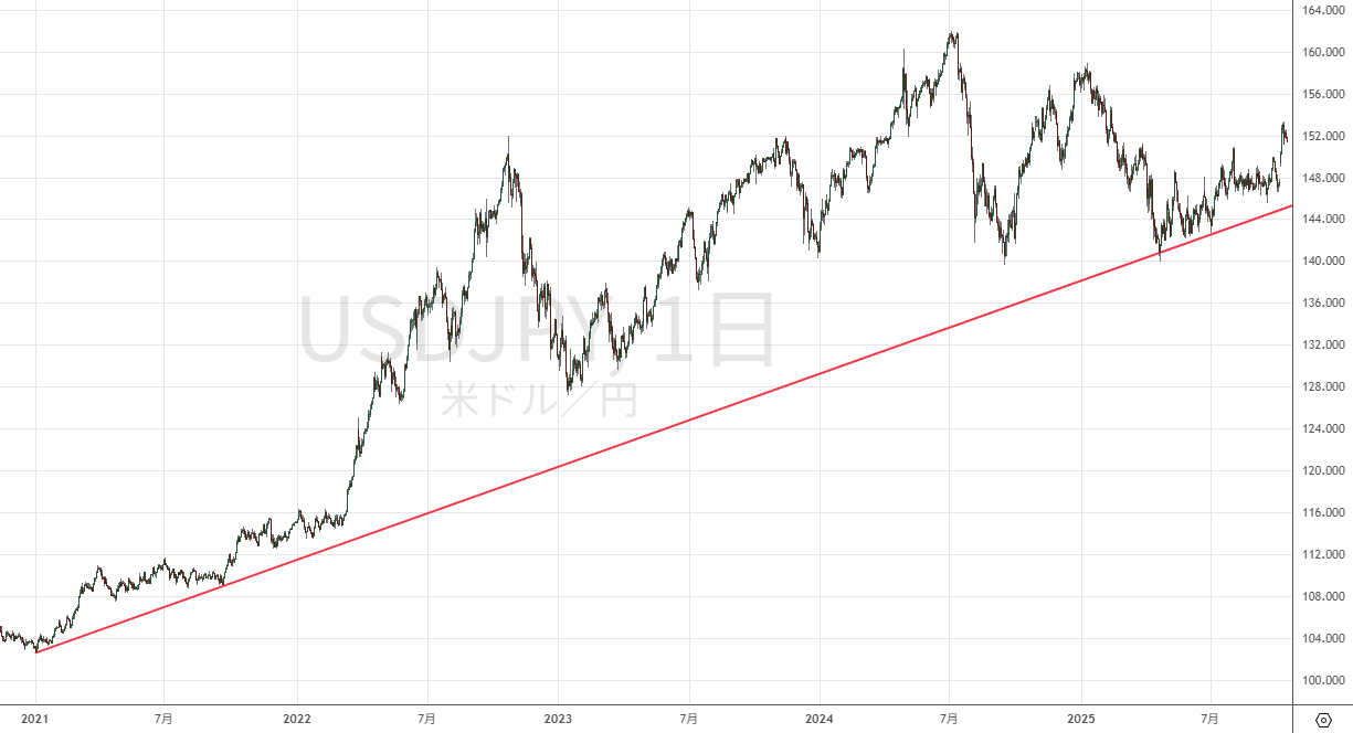 気になるところのドル円を見ても150円台と相変わらず円安傾向にある事が分かります。