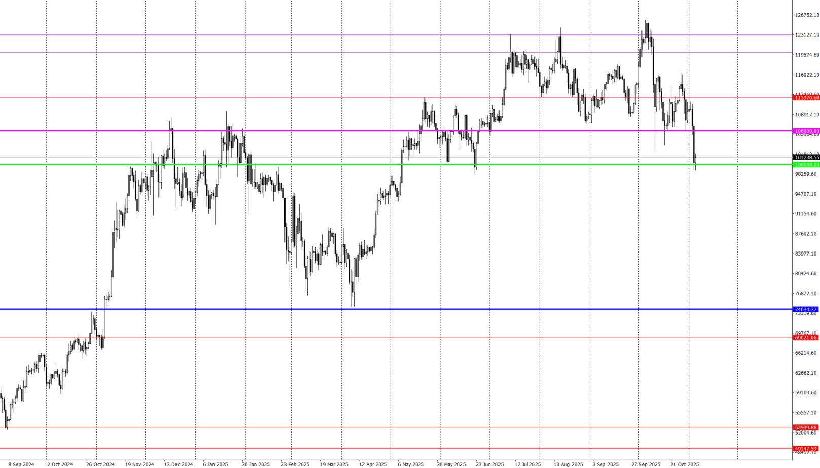 二度目の10万ドル割れという事でこの後の動きは注目されるところでしょう。