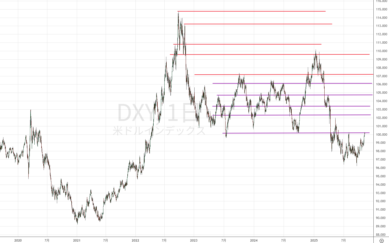 ついに3桁である100を回復して抵抗ラインに差し掛かってきたのが見て取れます。