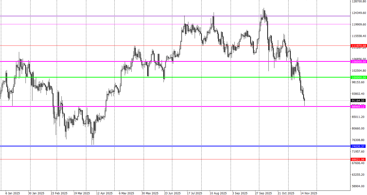 :依然として大きく上下する展開が続き、10万ドルを大きく下回ることに。