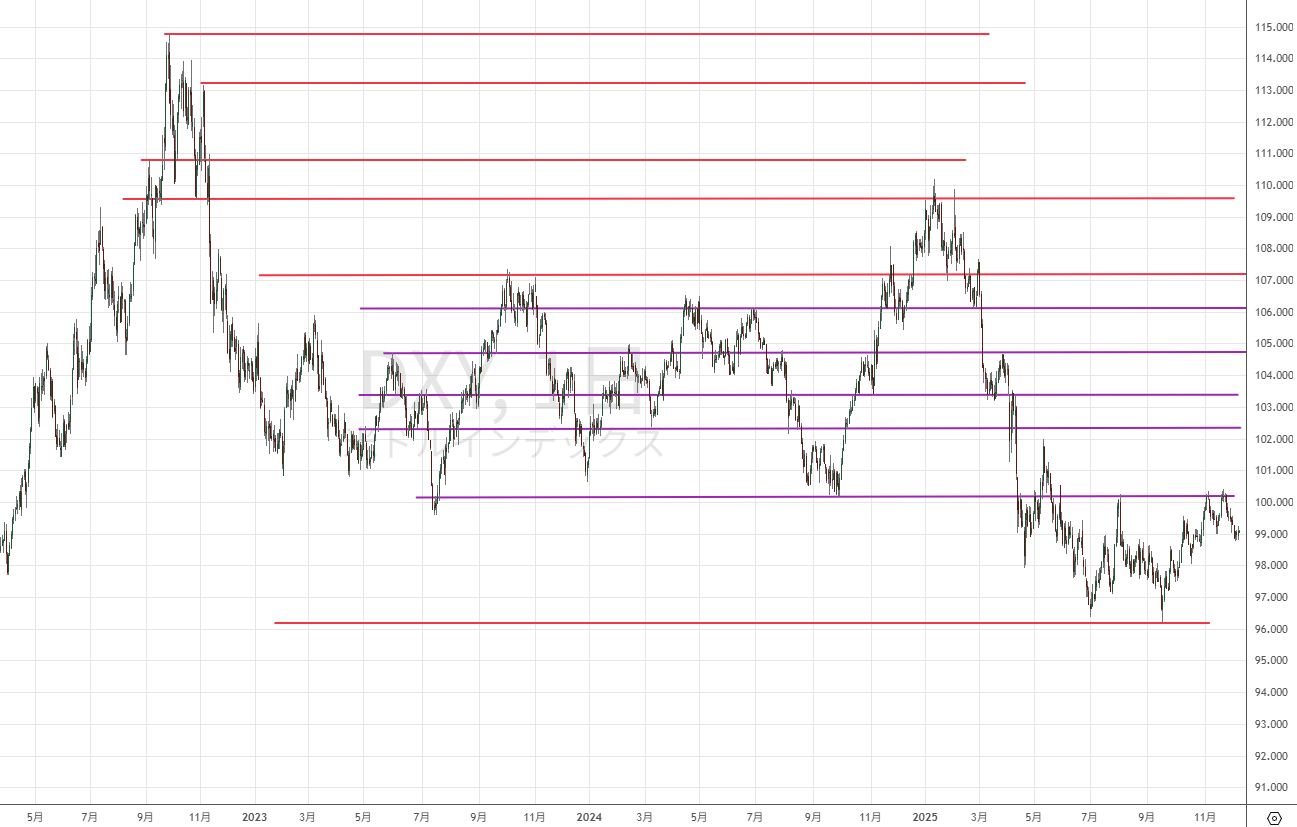 主要市場はどれもチャート上の「分岐点」に位置しており、