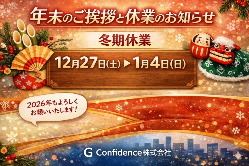 本日をもちまして、G Confidence株式会社の年内最終営業日となりました。