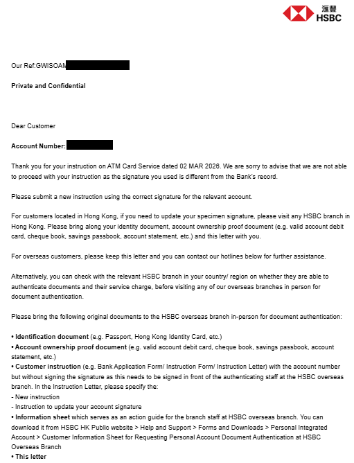 HSBC香港 書類でのエラー通知!署名相違の対処法